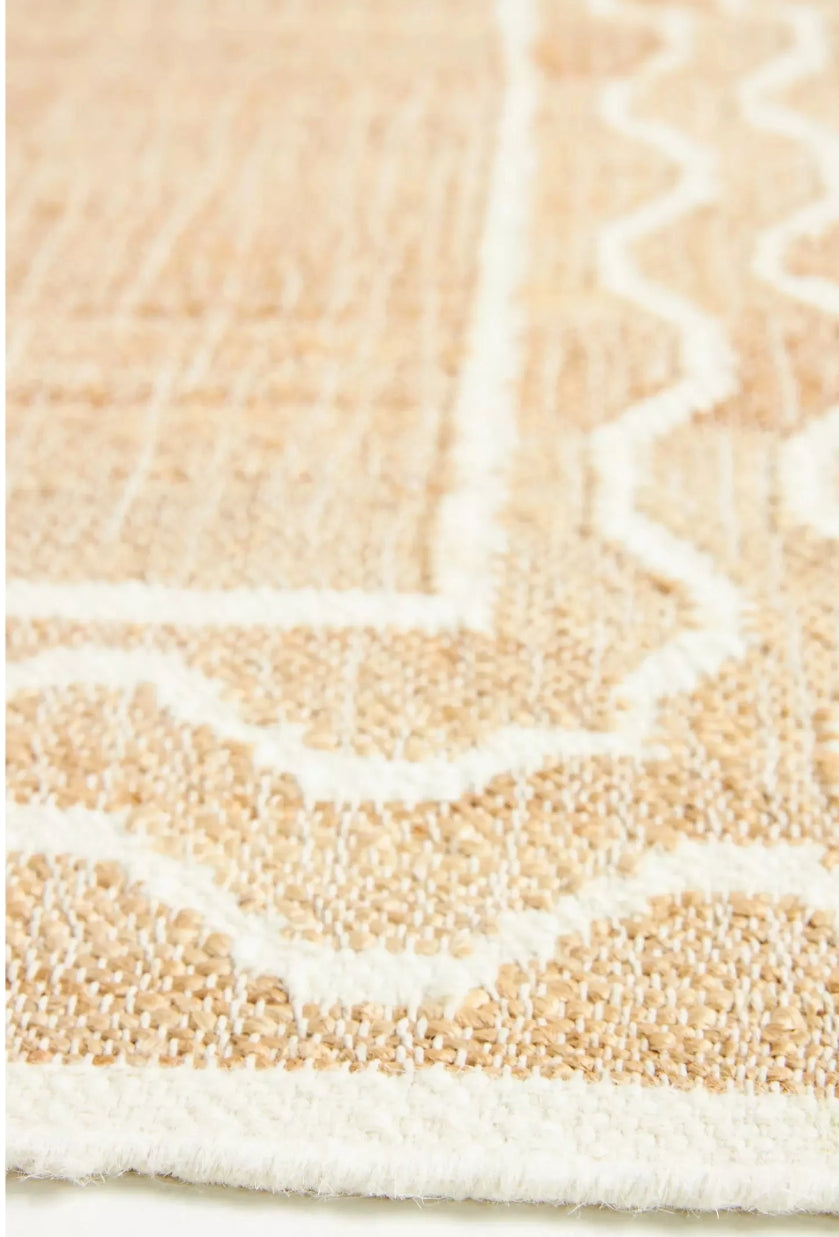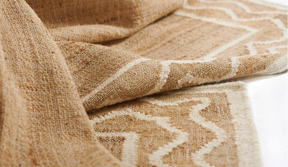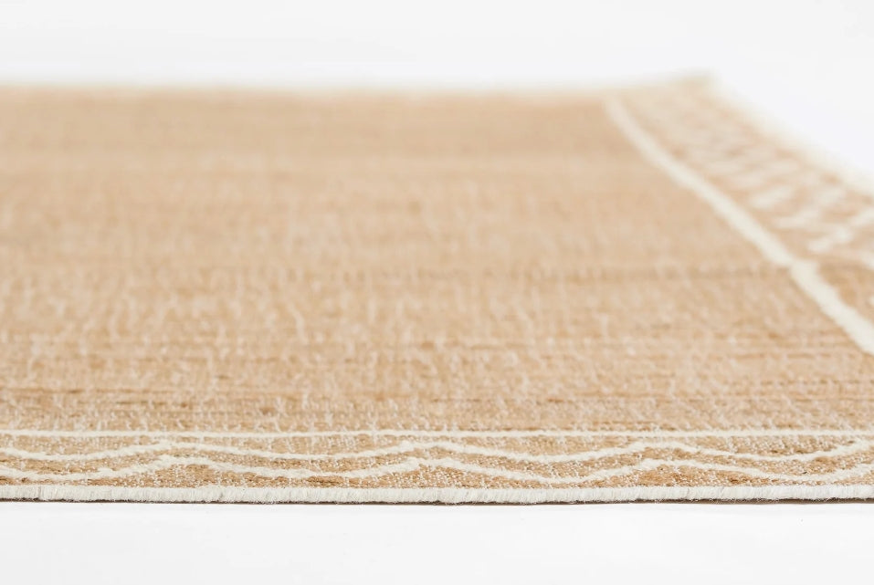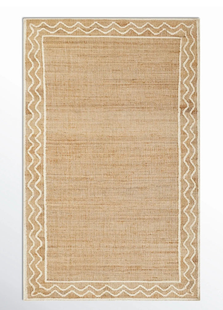 Natural Jute Area Rug – Handwoven Flatweave with Decorative Ivory Zigzag Edge