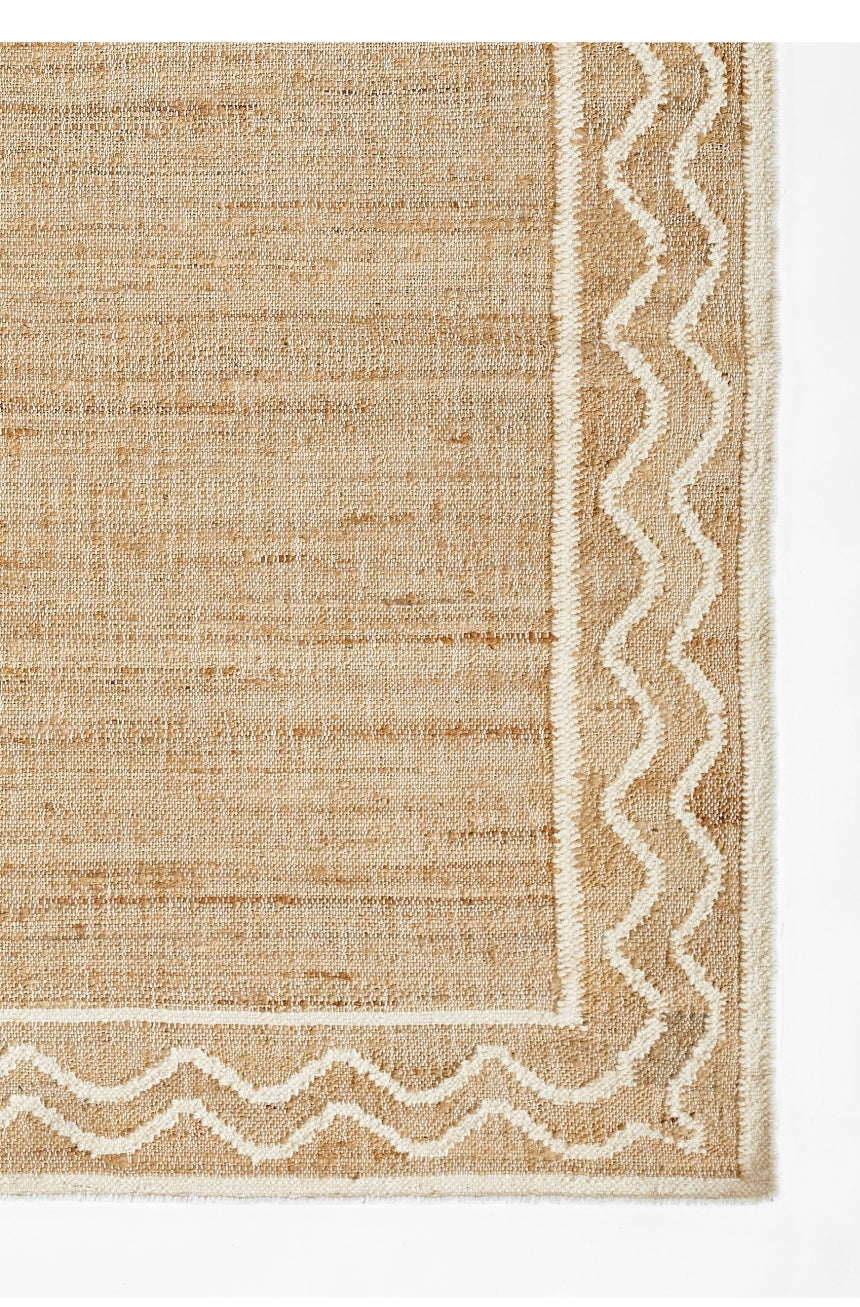 Handwoven Jute Flatweave Rug with Ivory Zigzag Border