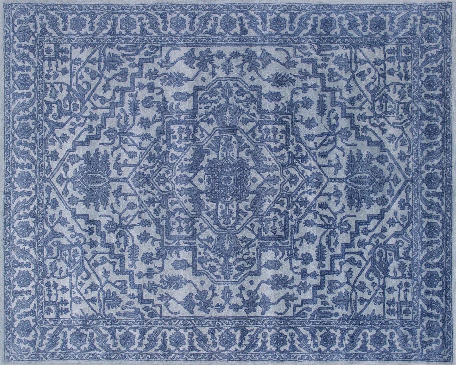 Floral Light Blue Oriental Oushak Hand-Tufted 100% Wool Area Rug Carpet