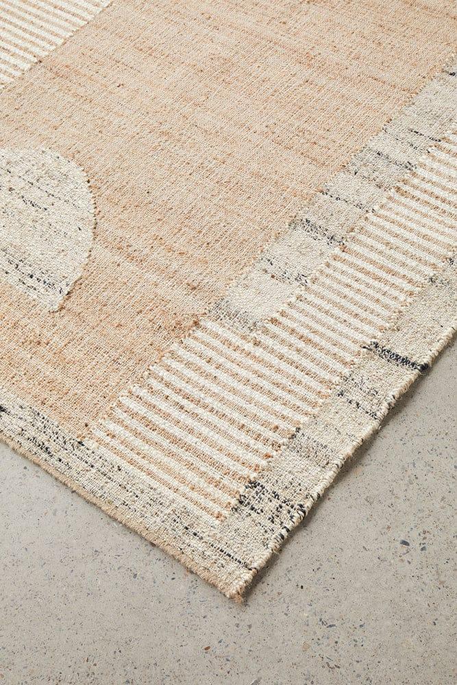 Minimalist Handwoven Rug – Jute & Wool Flatweave with Modern Abstract Pattern in Beige and Ivory