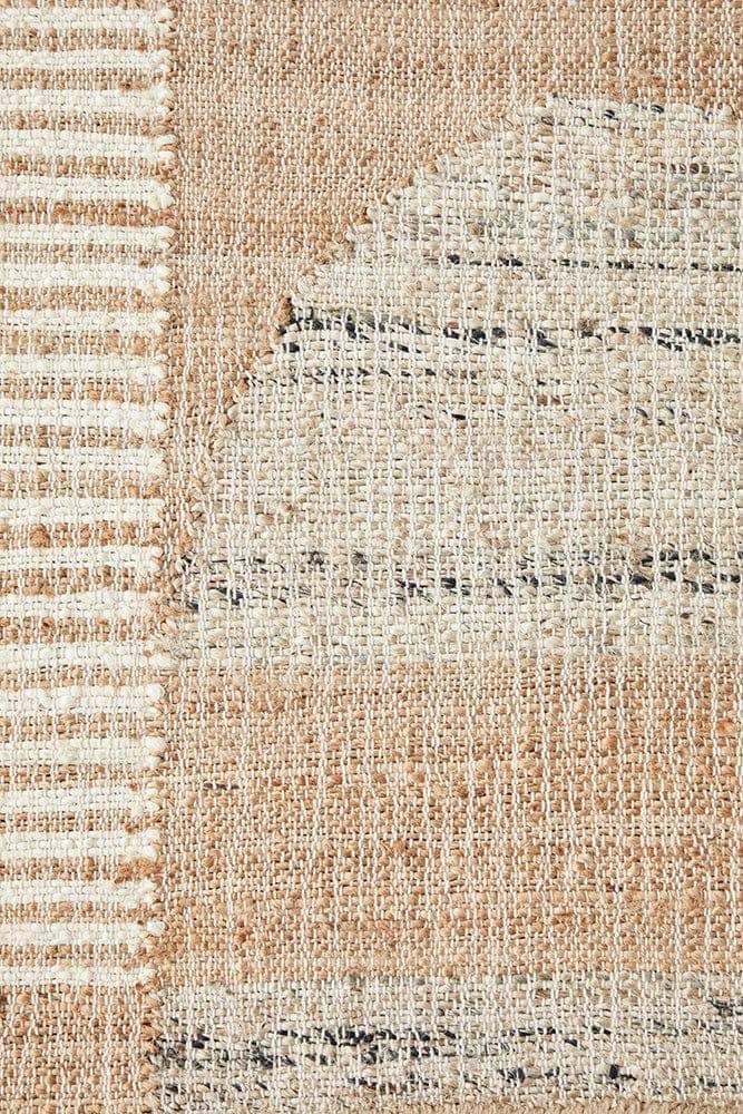 Elevate your interior with this handwoven jute and wool rug, featuring a modern abstract design in calming beige and ivory tones. Crafted with a durable flatweave construction, this rug offers a lightweight, low-profile feel—perfect for high-traffic areas like living rooms, bedrooms, and entryways. The natural jute lends an earthy, textured foundation, while the wool adds a layer of softness and warmth underfoot. Subtle accents of gray and cream within the abstract geometric pattern enhance its contemporary appeal, making this versatile rug an ideal fit for both minimalist and modern spaces.