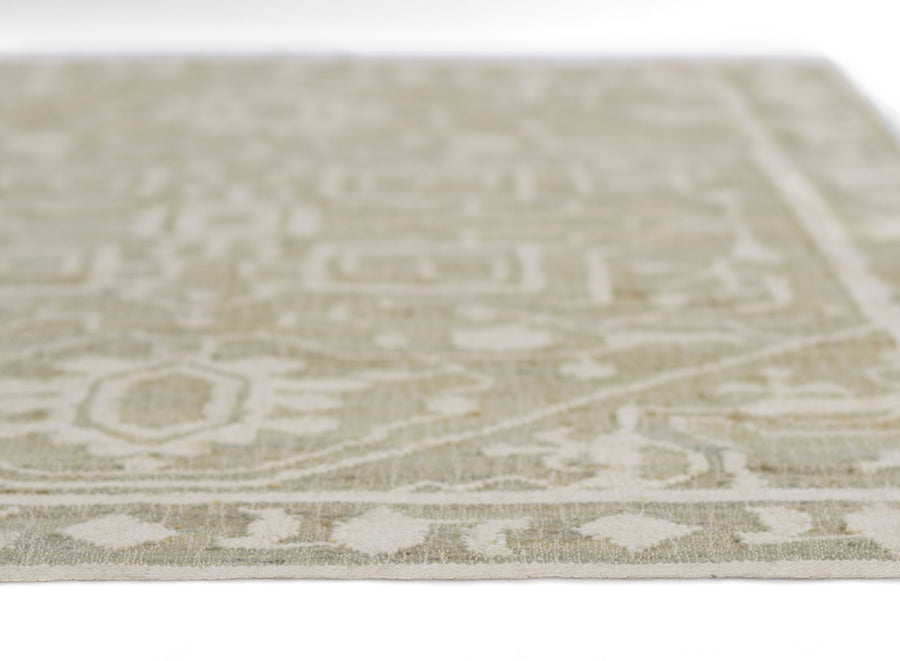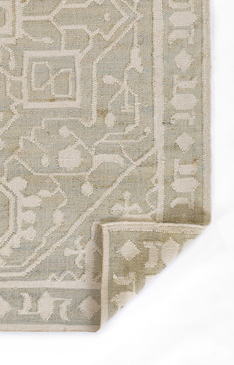 Elevate your space with the refined elegance of this Handwoven Wool & Jute Flatweave Rug, showcasing an intricate geometric pattern in soothing soft green and ivory tones. Crafted by skilled artisans, the blend of natural jute and soft wool offers a harmonious balance of durability, comfort, and organic texture. The flatweave construction ensures a smooth, low-profile surface that’s perfect for high-traffic areas such as living rooms, dining rooms, or bedrooms. Its neutral yet sophisticated palette allows it to blend seamlessly into both modern and traditional settings, making it a versatile foundation for any décor.