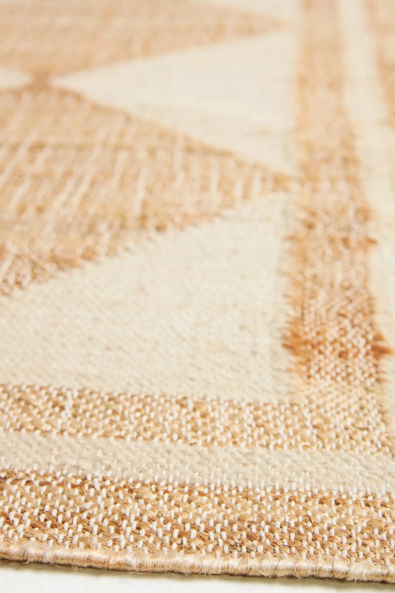 Natural & Beige Diamond Pattern Rug – Handcrafted Flatweave in Jute and Wool Blend