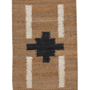 Add a touch of natural elegance to your space with this handwoven jute rug runner. The earthy natural tones are beautifully complemented by bold black and white geometric patterns, creating a striking contrast that enhances any room. Crafted with durable jute fibers, this rug offers a textured feel and is perfect for high-traffic areas like hallways, entryways, and kitchens. Its minimalist design and organic materials blend seamlessly with a variety of decor styles, from bohemian to modern. Handcrafted by skilled artisans, this rug provides both a timeless look and sustainable craftsmanship for your home.