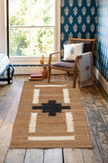 Handwoven Jute Rug Runner with Geometric Black & White Design - Natural & Black