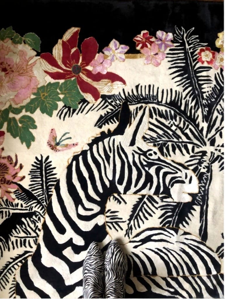 Modern Hand-Tufted Wool Rug, Black & White Zebra Floral Design with Viscose Details, 11x11 ft