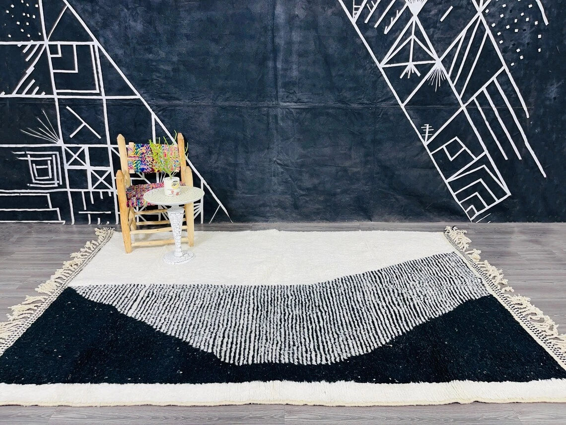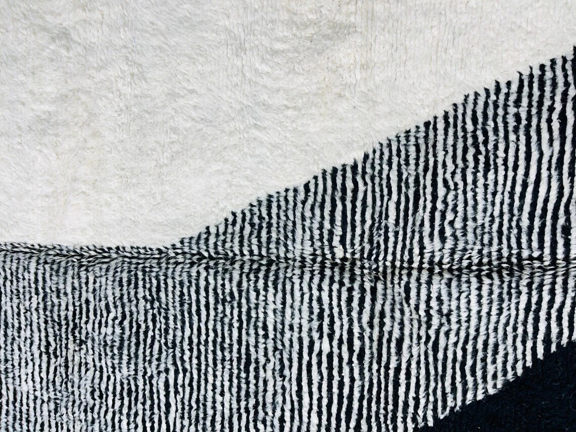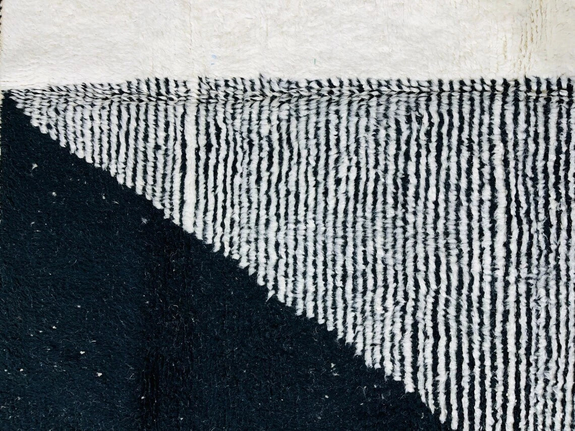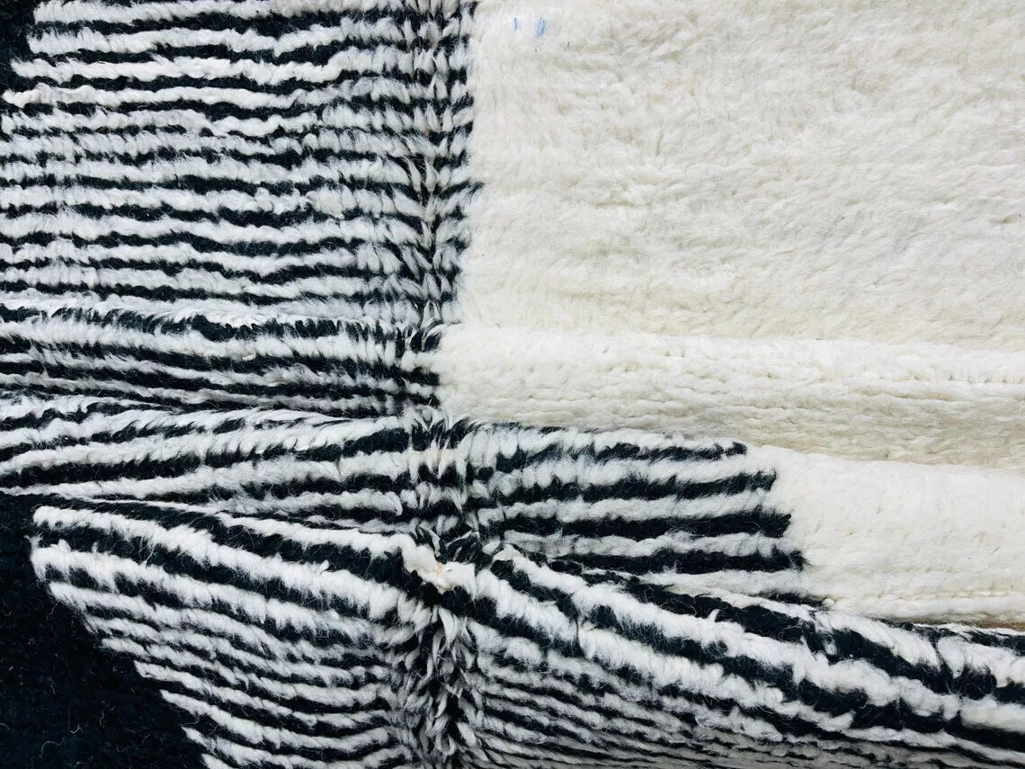 Black & White Moroccan Beni Ourain Rug | Handwoven Berber Wool | Custom Made