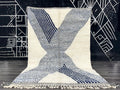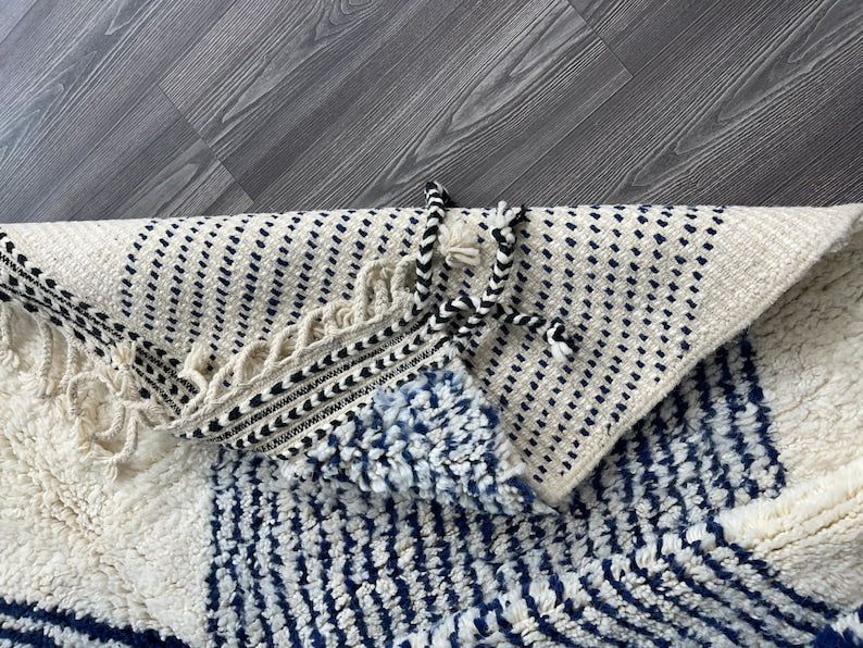 Handwoven Moroccan Beni Ourain Rug – Creamy Wool with Calming Blue Accents