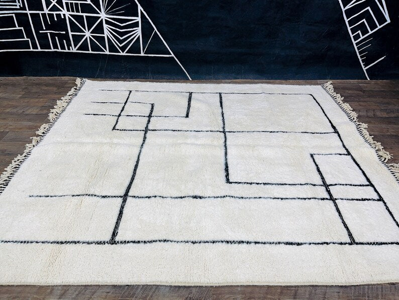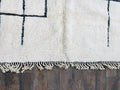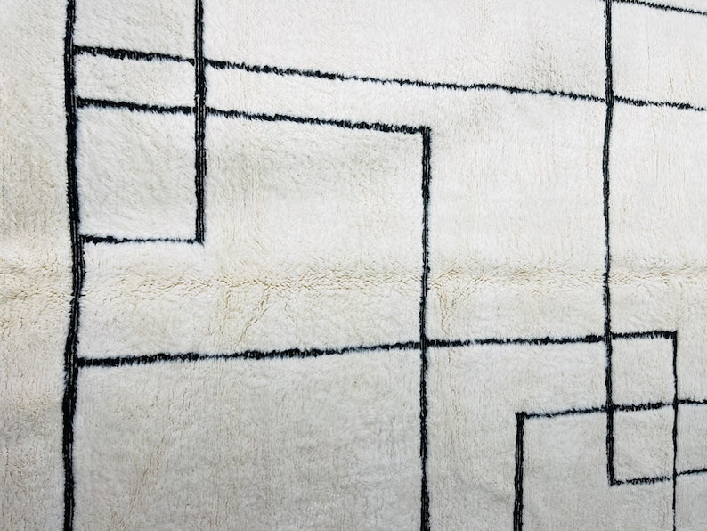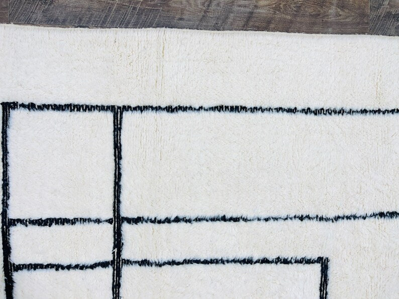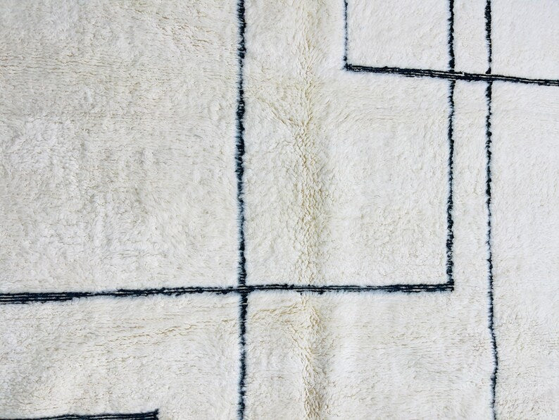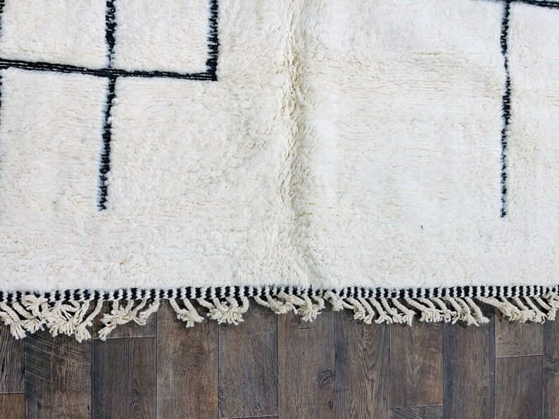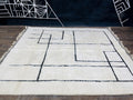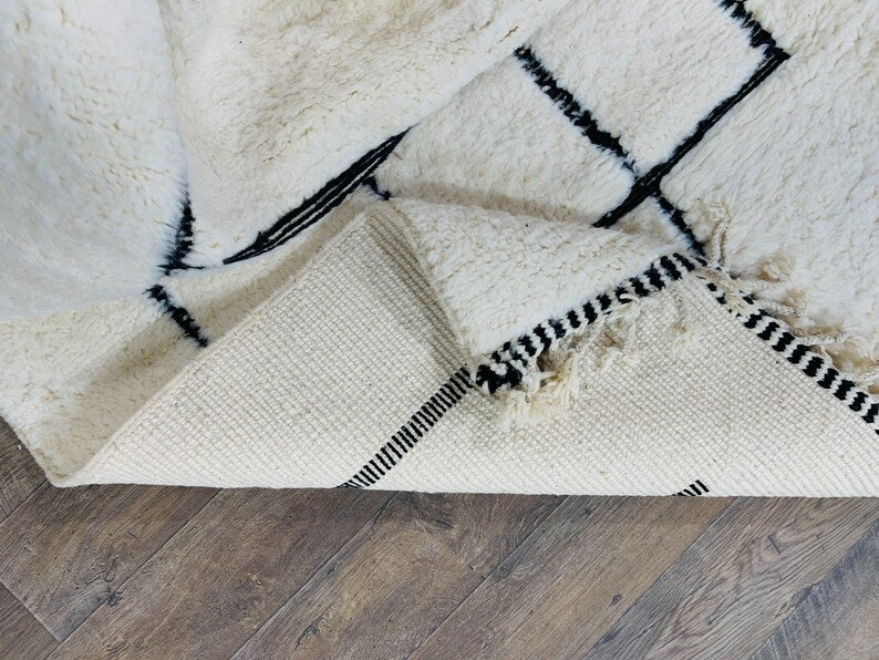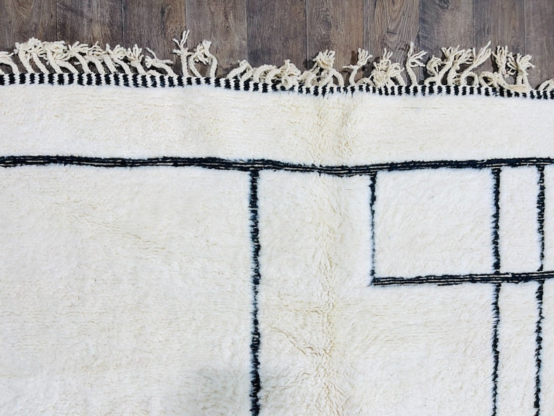 Embrace the artistry of Morocco and the serenity of Scandinavian design with this handwoven large white rug. Crafted from soft, natural wool, this rug boasts a dreamy abstract pattern that evokes a sense of calm and wonder. Its neutral palette and subtle ethnic motifs make it a versatile addition to living rooms, nurseries, playrooms, or any space seeking a touch of bohemian charm. This rug is more than just floor covering; it's a canvas of creativity and a testament to the rich heritage of Moroccan weaving. Its generous size provides ample space for play, relaxation, or gathering, while the plush wool offers comfort and warmth underfoot.