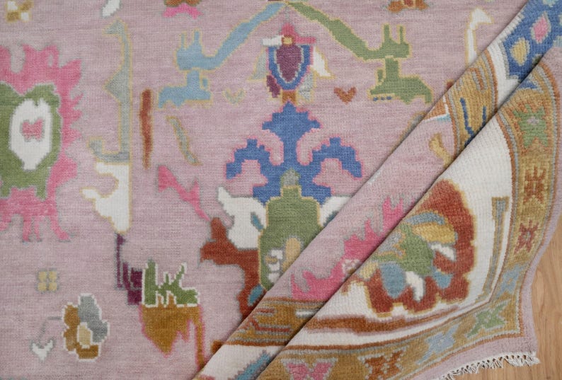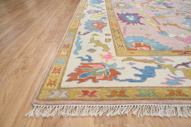 Blush Blooms Hand-Knotted Oushak Rugs for Living Room and Bedroom