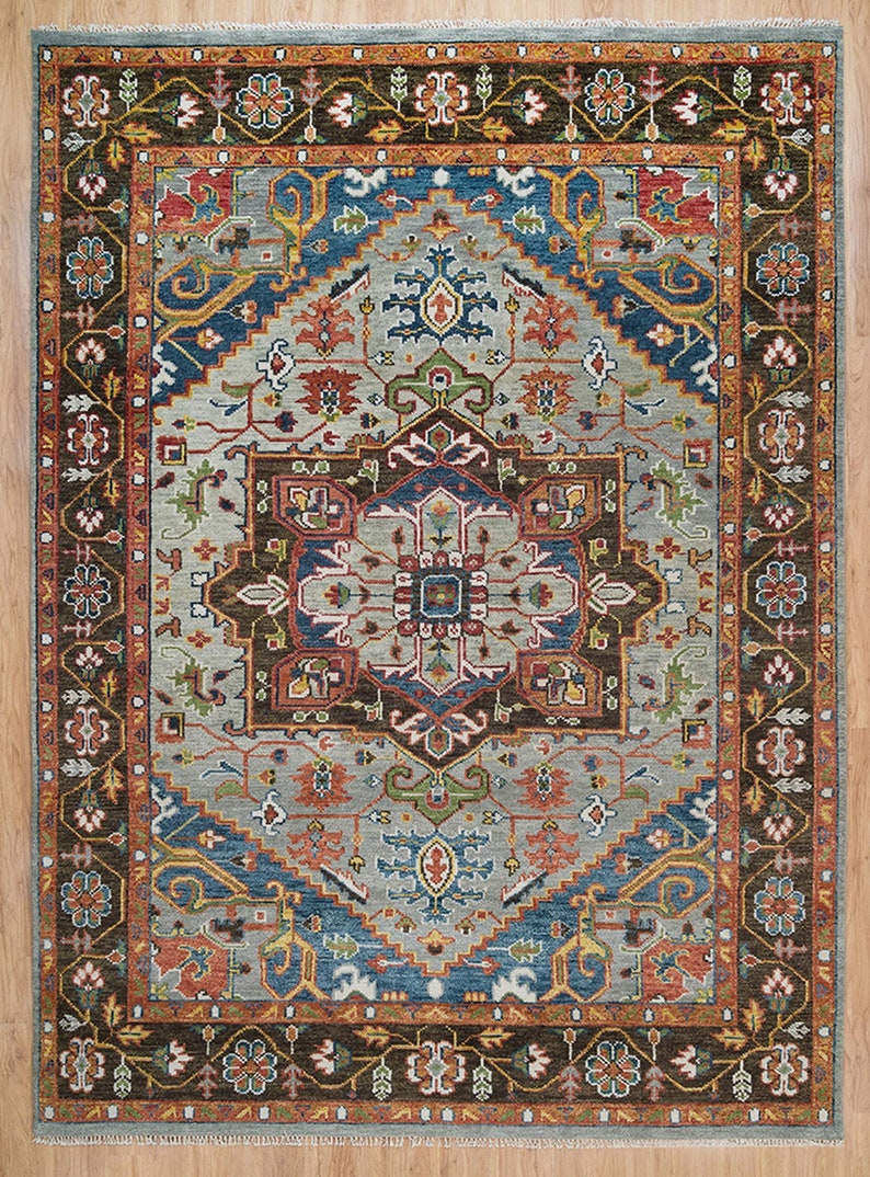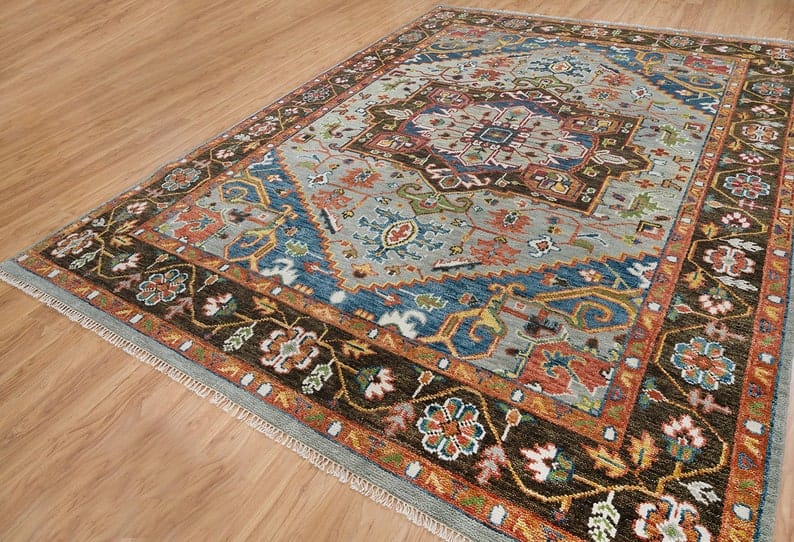 Handcrafted Harmony | Turkish Rug in Silver, Rust, and Blue | A Modern Masterpiece
