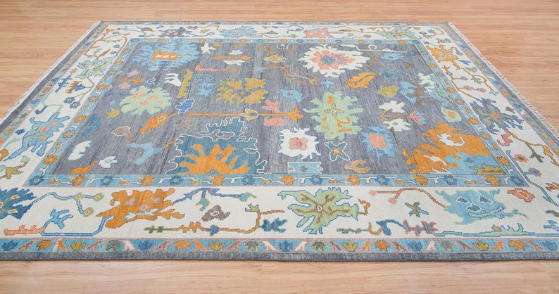 Elevate your space with our exquisite Hand-Knotted Oushak Rug, blending traditional craftsmanship with a modern aesthetic. Crafted by skilled artisans, this stunning piece features a captivating blend of blue-green hues with vibrant orange accents, adding a pop of color and character to any room. Each rug is meticulously hand-knotted using premium quality wool, ensuring both durability and luxurious softness underfoot. The intricate design incorporates a contemporary twist on the timeless Oushak style, creating a unique statement piece that effortlessly complements a variety of interior styles. Whether placed in a living room, bedroom, or dining area, this rug is sure to become the focal point of your decor, infusing your home with warmth, elegance, and undeniable charm. Experience the unparalleled beauty and craftsmanship of our Hand-Knotted Oushak Rug and transform your space into a sanctuary of style and sophistication.
