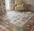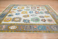 Enchanted Tapestry | Ivory Oushak Rug with Gray Border & Colorful Accents | Wool, Bedroom