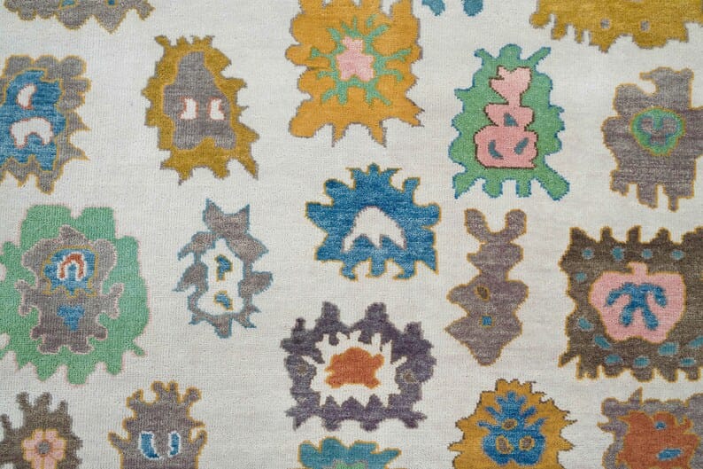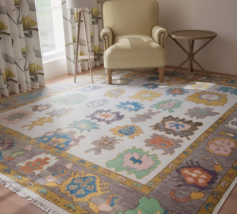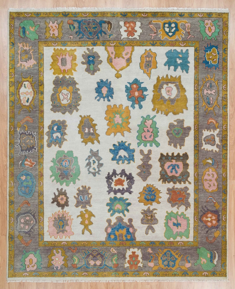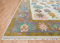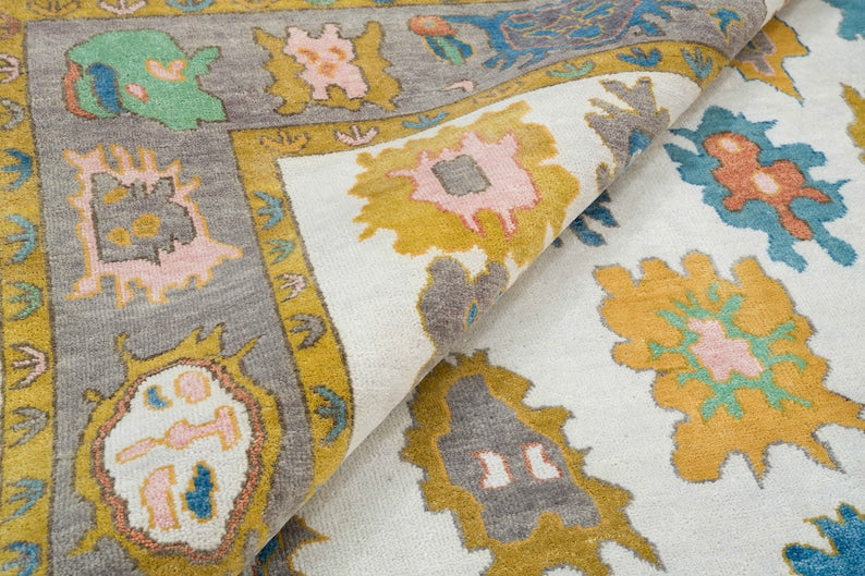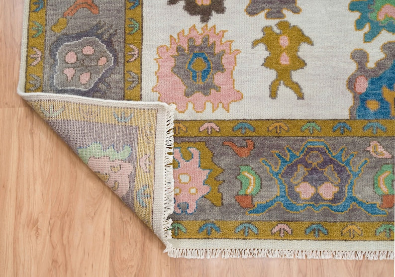 Step into a world of enchantment with our "Enchanted Tapestry" Ivory Oushak Rug, adorned with a refined gray border and playful colorful accents. Crafted from premium wool, this rug offers luxurious comfort and durability, making it perfect for your bedroom sanctuary. Embrace the timeless elegance of Oushak craftsmanship while adding a touch of whimsy with the vibrant pops of color. Whether you're lounging or unwinding, this rug transforms your bedroom into a cozy retreat, inviting you to indulge in moments of relaxation and serenity. Elevate your space with the charm and sophistication of our "Enchanted Tapestry" Ivory Oushak Rug, and let its exquisite design weave stories of comfort and style throughout your home.