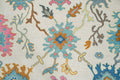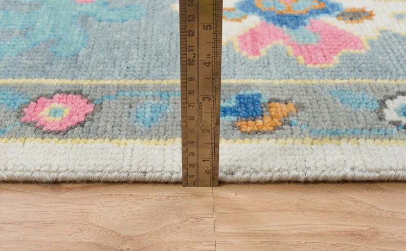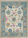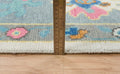 Pink Blue Contemporary Vibrant Turkish Rug | White Blue Oushak Area Rug | Blue Pink Wool Rug in Graphite Details